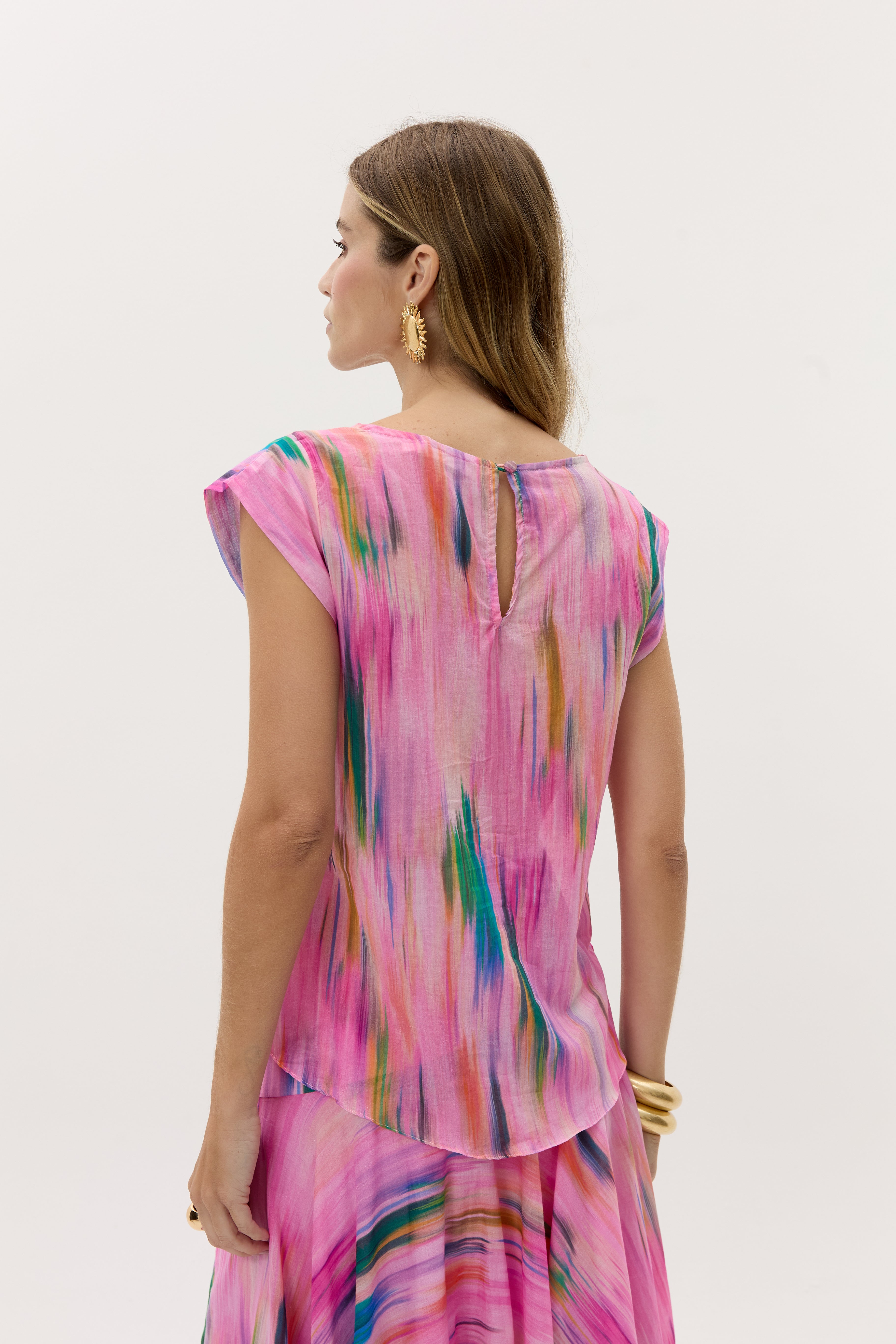 A Saia Estampada Aquarela traduz a leveza do algodão em uma peça marcada pela estampa em aquarela que mistura cores vibrantes e fluidas. Sua modelagem ampla e os recortes assimétricos criam movimento e fluidez a cada passo, enquanto o cós estruturado realça a cintura com elegância. Uma peça versátil e sofisticada, perfeita para ocasiões que pedem frescor e estilo.