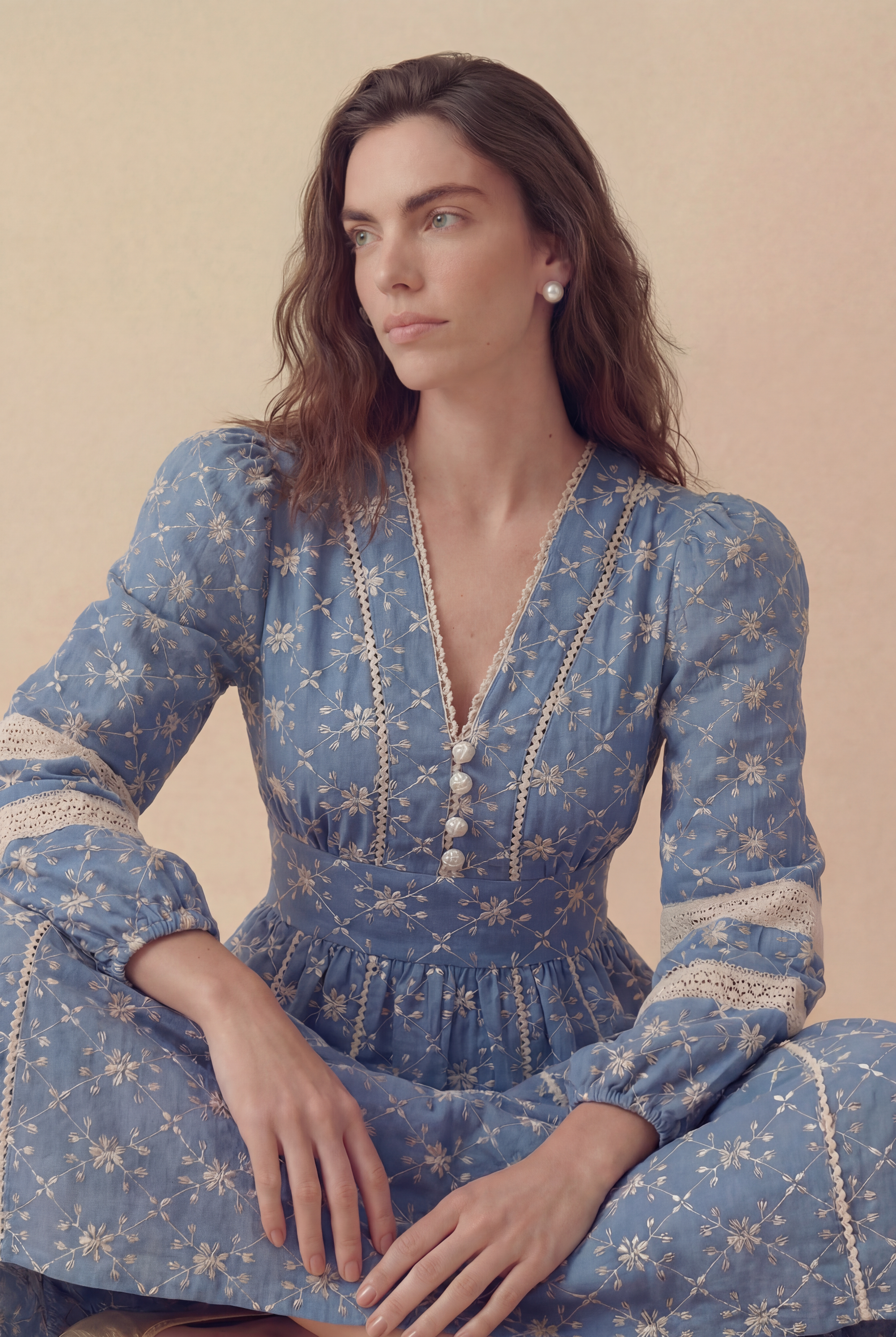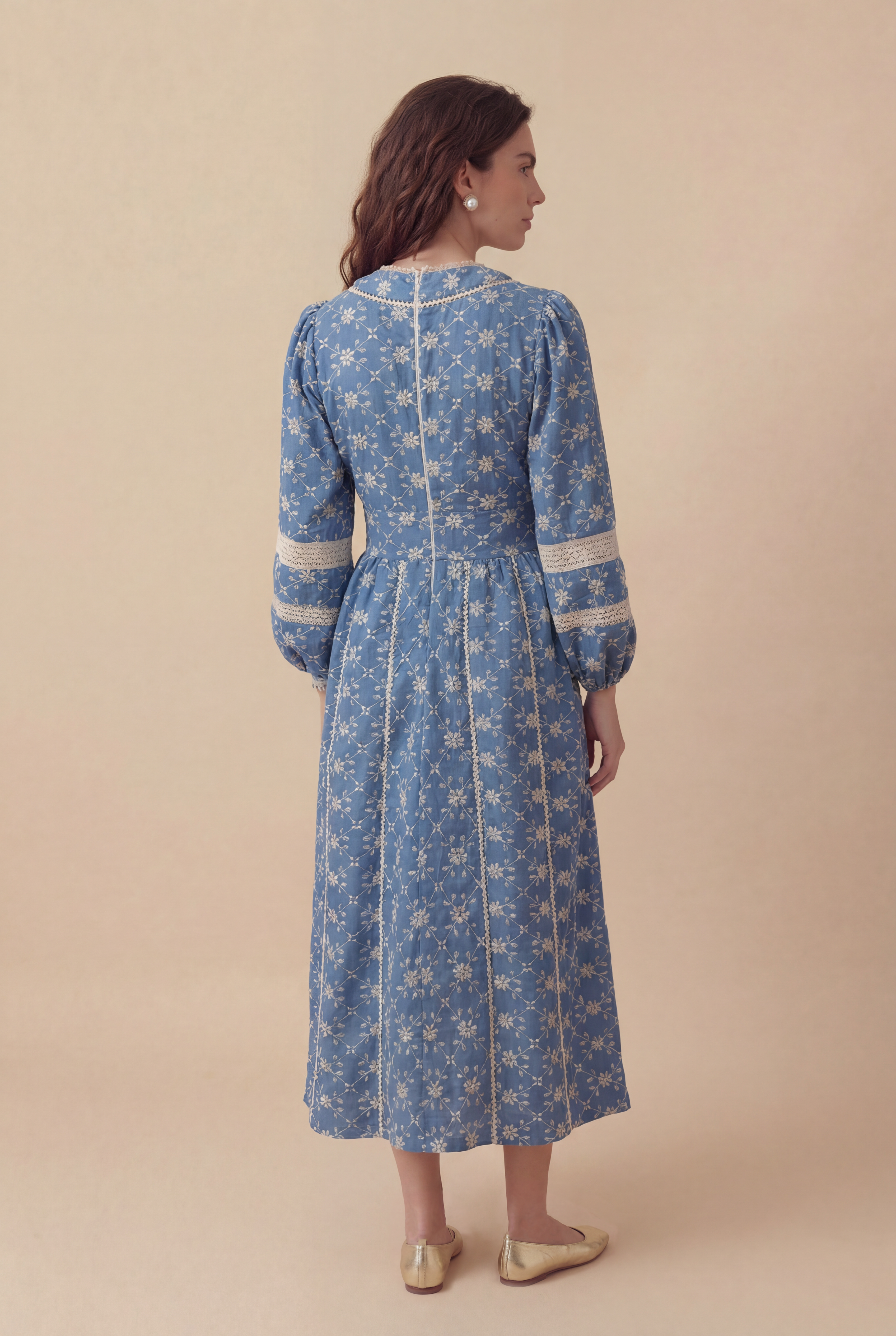 O Vestido Camomila traduz a delicadeza dos florais em uma proposta leve e atemporal. Confeccionado em tecido de toque macio, com bordado de algodão, ele apresenta um bordado que evoca frescor e suavidade. A modelagem mídi valoriza a silhueta com cintura levemente marcada, enquanto o decote em V alonga a linha do colo. As mangas longas ganham charme especial com aplicações em renda contrastante, criando um jogo sutil de texturas. O fechamento frontal com botões de crochê feitos manualmente reforça o caráter artesanal da peça, trazendo ainda mais delicadeza ao design. Uma peça feminina e versátil, ideal para acompanhar diferentes momentos do dia.