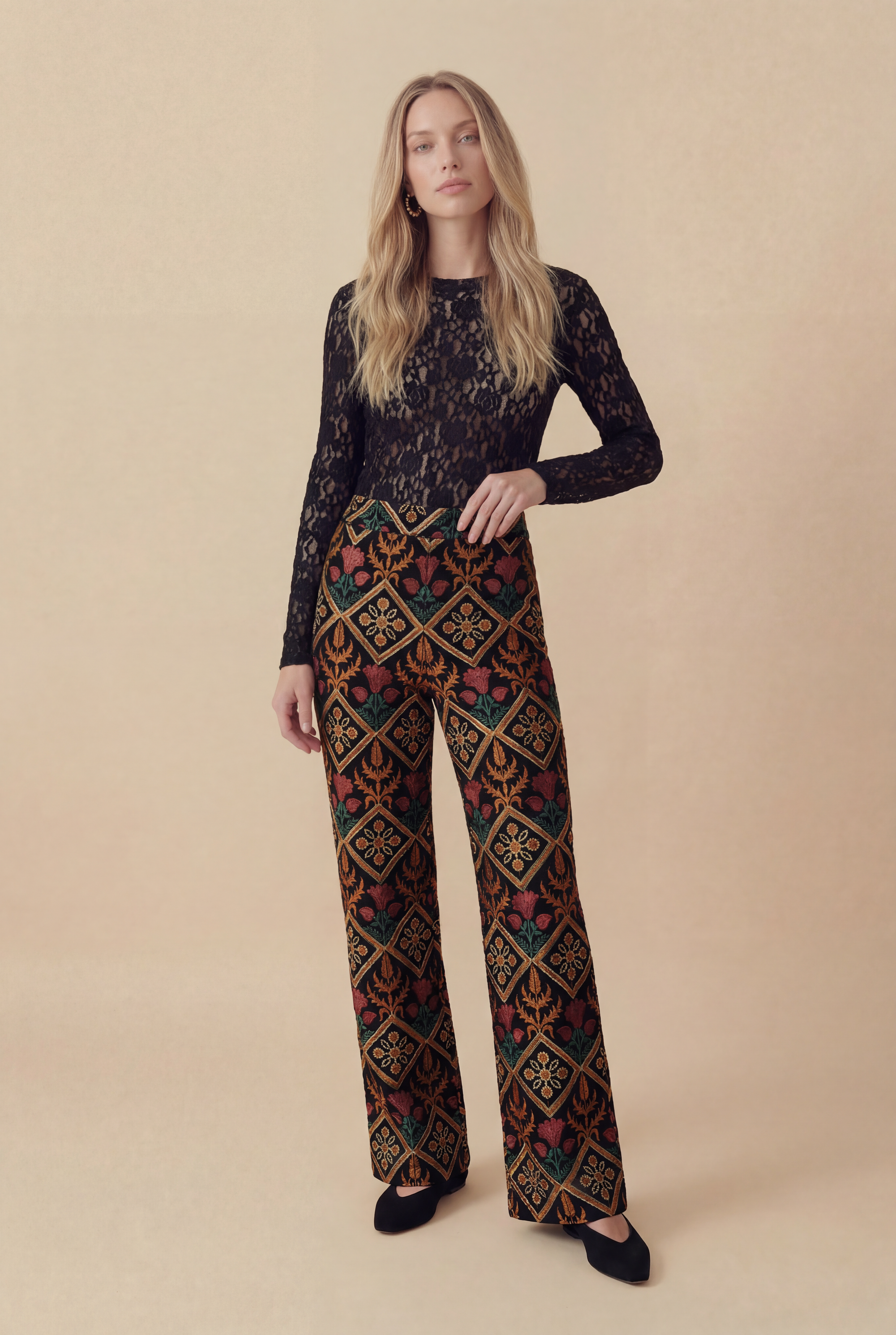 A Calça Herbário traduz a riqueza botânica da coleção em uma peça marcante e sofisticada. Confeccionada em tecido inteiramente bordado com desenhos florais e arabescos que remetem a um herbário ornamental, apresenta modelagem reta com caimento elegante que alonga a silhueta e valoriza o movimento da peça. O cós estruturado garante ajuste confortável à cintura, enquanto a padronagem bordada cria textura e profundidade visual que elevam a composição. Para maior conforto e segurança ao vestir, a peça acompanha short de forro em algodão, preservando o conforto e a segurança de quem usa. Versátil e cheia de personalidade, é ideal para composições elegantes que refletem a estética autoral e atemporal da Nay.