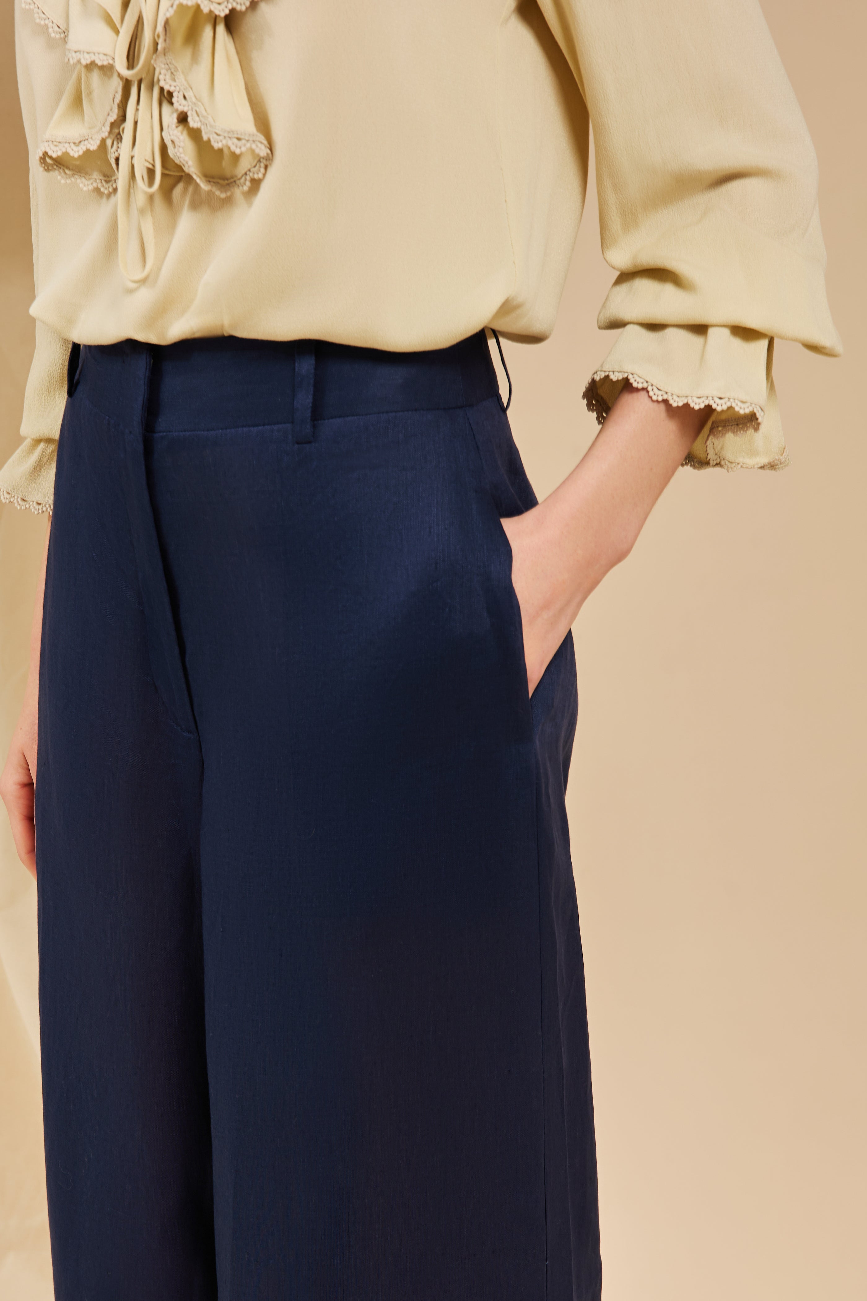 A Calça Sollene é confeccionada em linho, unindo elegância e leveza em uma modelagem flare que alonga a silhueta e proporciona caimento sofisticado. Com cintura alta, bolsos laterais funcionais e fechamento frontal por zíper e colchete interno, é perfeita para compor produções refinadas, especialmente quando coordenada com o Blazer Sollene.