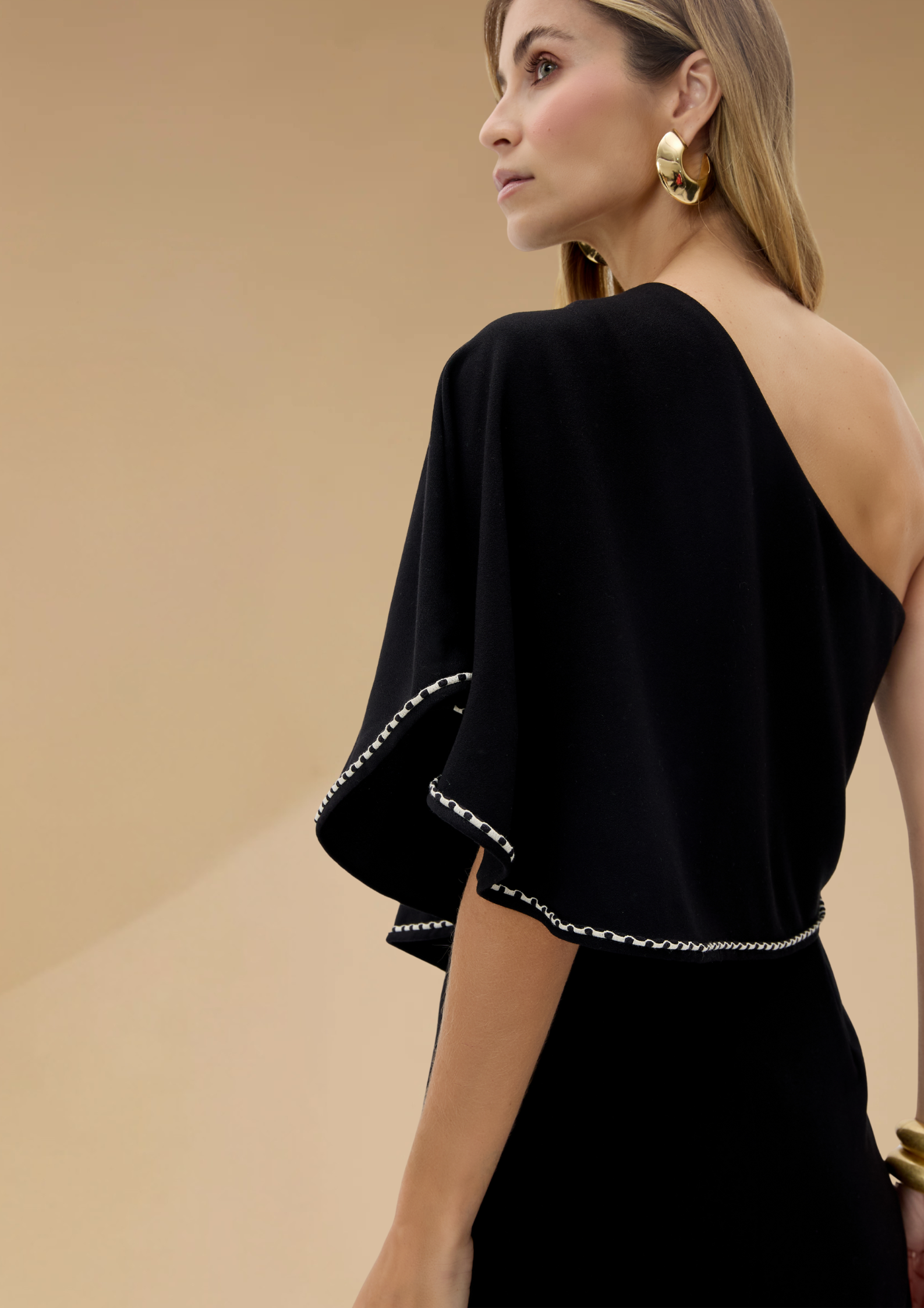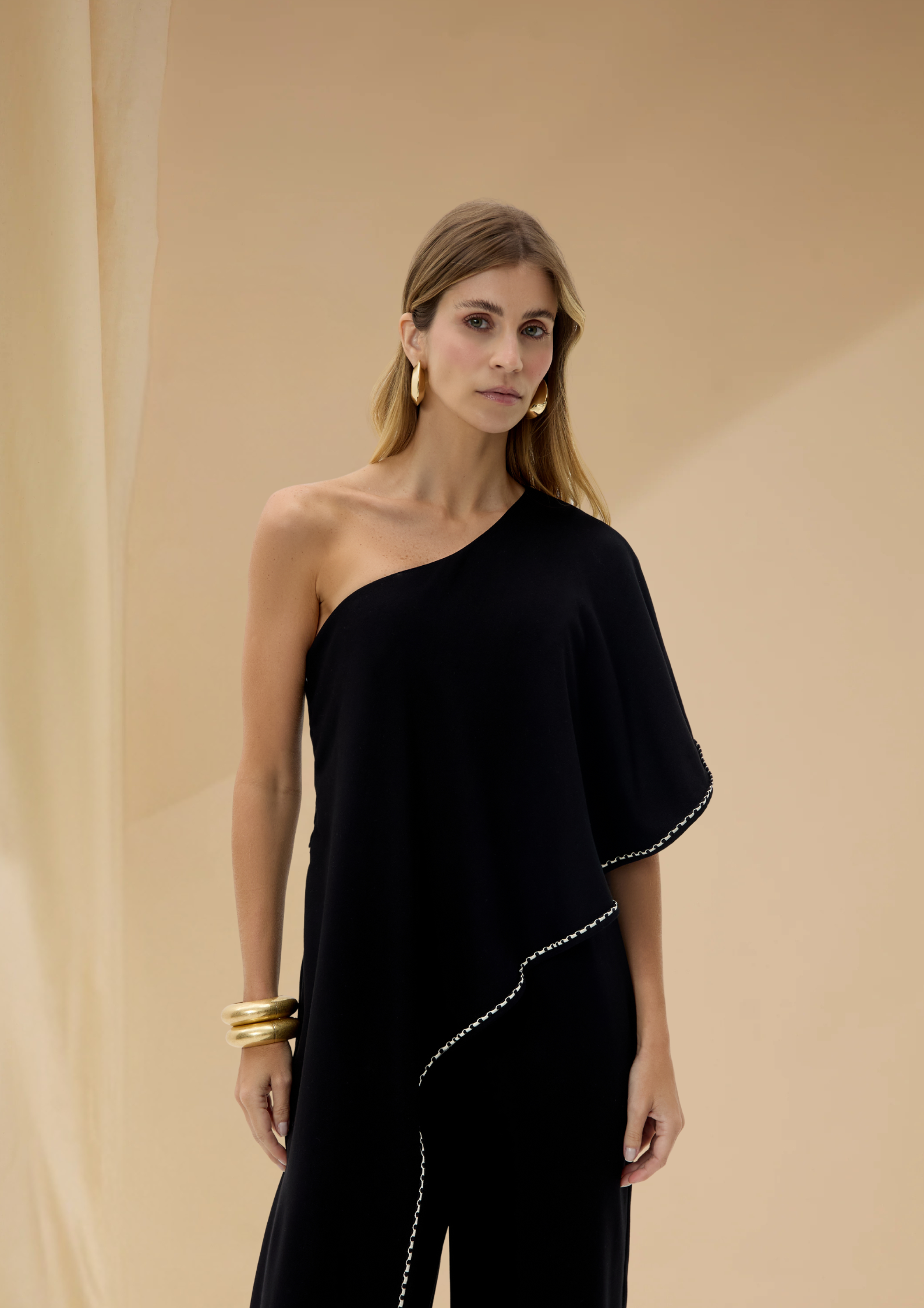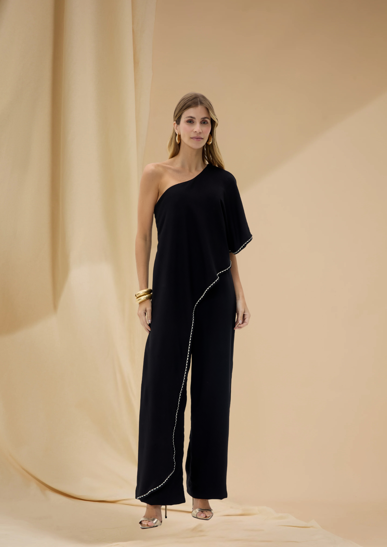 O Macacão Gardênia é confeccionado em viscose e traduz elegância através do seu design assimétrico de um ombro só. A sobreposição de tecido cria um caimento leve e fluido, enquanto o acabamento contrastante nas bordas confere um detalhe refinado e moderno. A calça de perna reta alonga a silhueta, equilibrando sofisticação e conforto em uma peça versátil e atemporal.