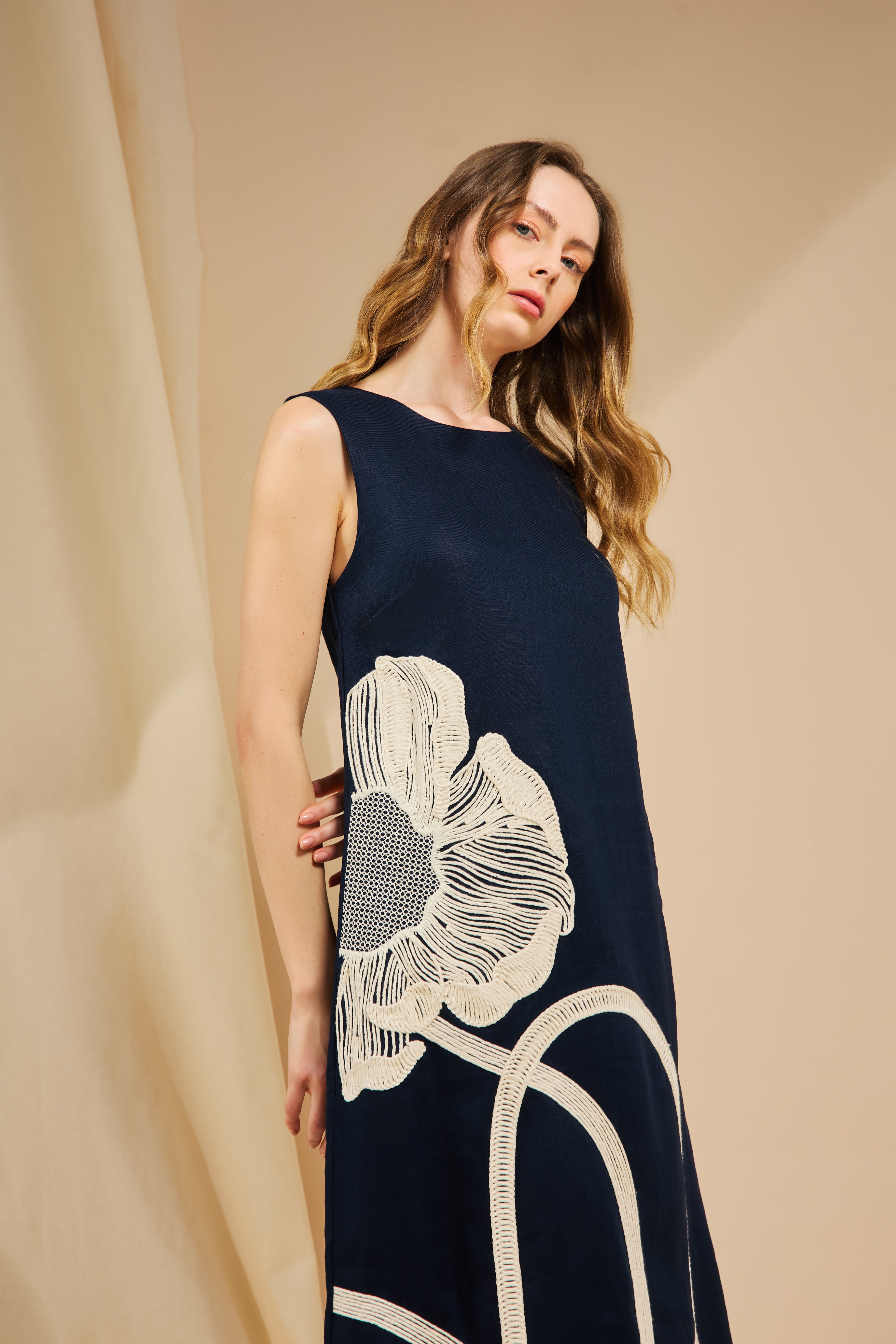 O Vestido Fiore é uma peça que une o minimalismo do design à força dos detalhes artesanais. Confeccionado em linho puro, destaca-se pelo toque natural e pela textura nobre do tecido. Sua modelagem reta e o comprimento mídi proporcionam elegância despretensiosa, enquanto as aplicações bordadas de flores estilizadas criam um contraste sutil e sofisticado. Um vestido atemporal, perfeito para momentos que pedem leveza e presença. Peça acompanha anágua de forro.