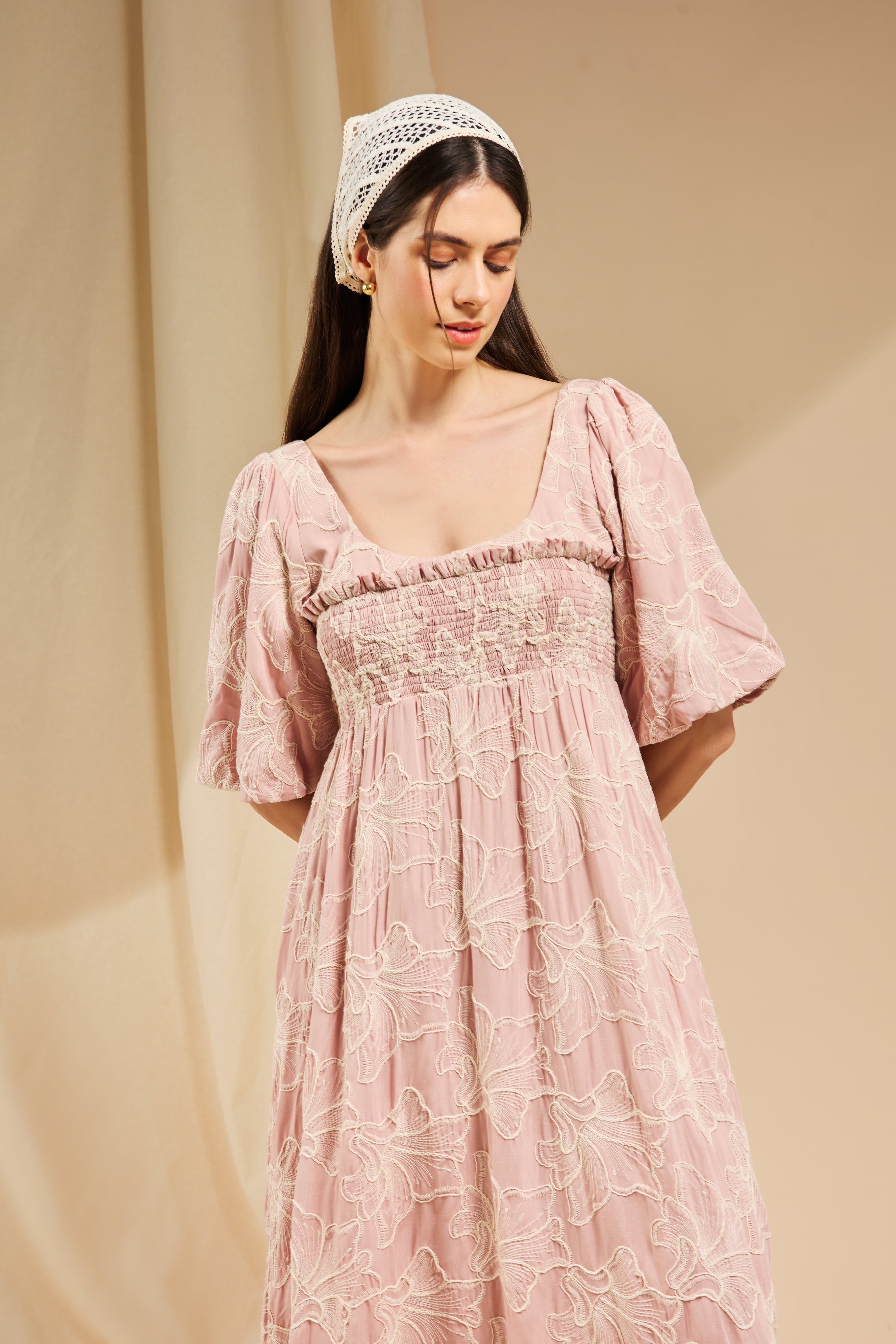 Delicado e cheio de feminilidade, o Vestido Midi Sunny é confeccionado em viscose com bordado em algodão que adiciona textura e sofisticação. O busto com lastex garante conforto e ajuste ao corpo, enquanto a amarração nas costas em rolote com tassel artesanal oferece um acabamento especial. Com mangas amplas e decote quadrado, é ideal para composições românticas e leves em dias de sol.